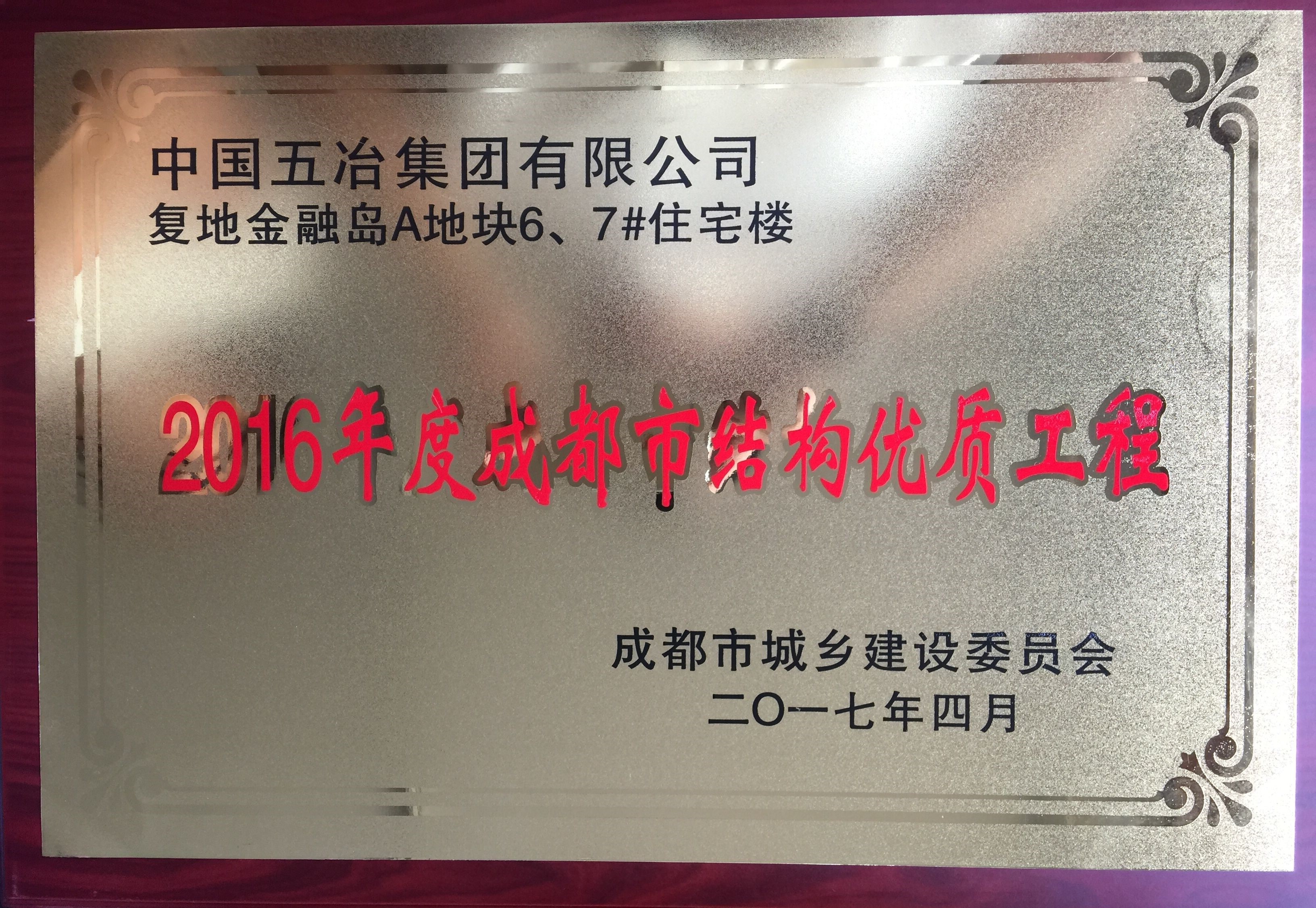 復地金融島A地塊6、7#住宅樓—2016年度成都市結構優(yōu)質工程