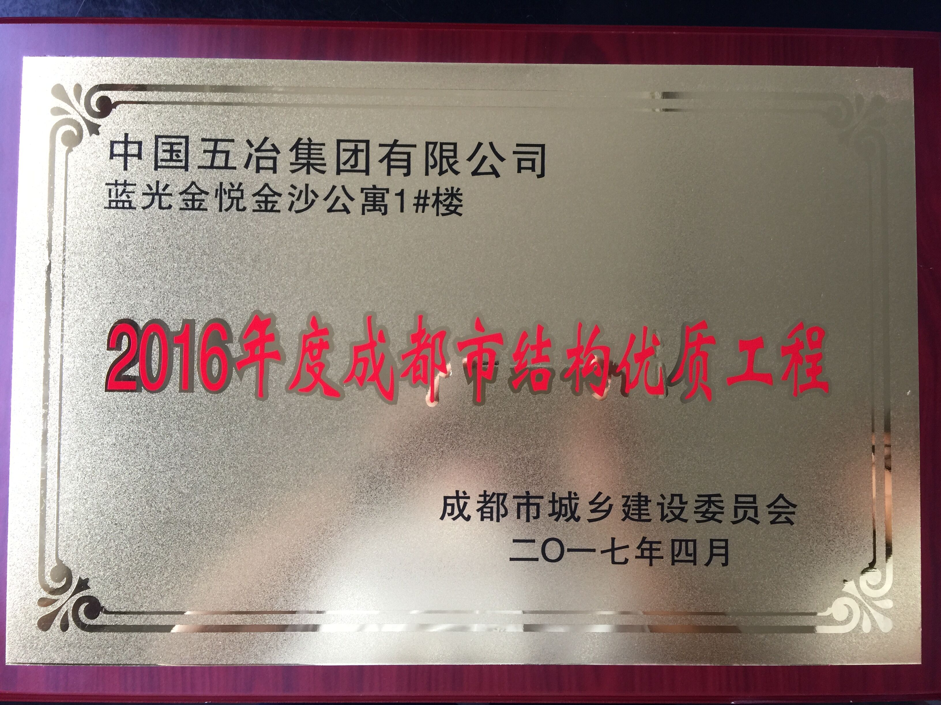 藍光金悅金沙公寓1#樓—20116年度成都市結構優(yōu)質工程
