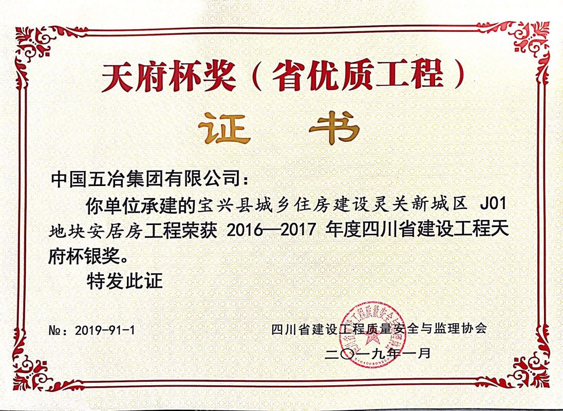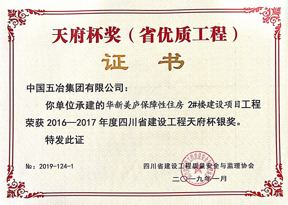 華新美廬保障性住房2#樓-2016-2017年度四川省天府杯