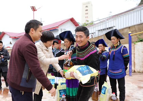 10月18日,在甘子村慰問現場,吳睿代表一分公司黨委、工會向秦永紅及甘子村同胞致以誠摯的慰問和美好的新春祝福,并將慰問信交予村委會書記手中,向貧困戶代表分發了大米、食用油等慰問品。吳睿在交流中表示,2020年是脫貧攻堅決戰決勝之年,彝族同胞們在脫貧之路上展現出了火熱的激情、堅韌頑強的意志,以及為美好生活而奮斗的拼搏精神。作為央企,中國五冶將繼續踐行社會責任,扛起央企擔當,與貧困村攜手奮進,迎接脫貧摘帽的那一天!愿甘子村所有百姓早日實現“兩不愁三保障”,愿彝族燦爛的民族文化綻放新時代光彩!