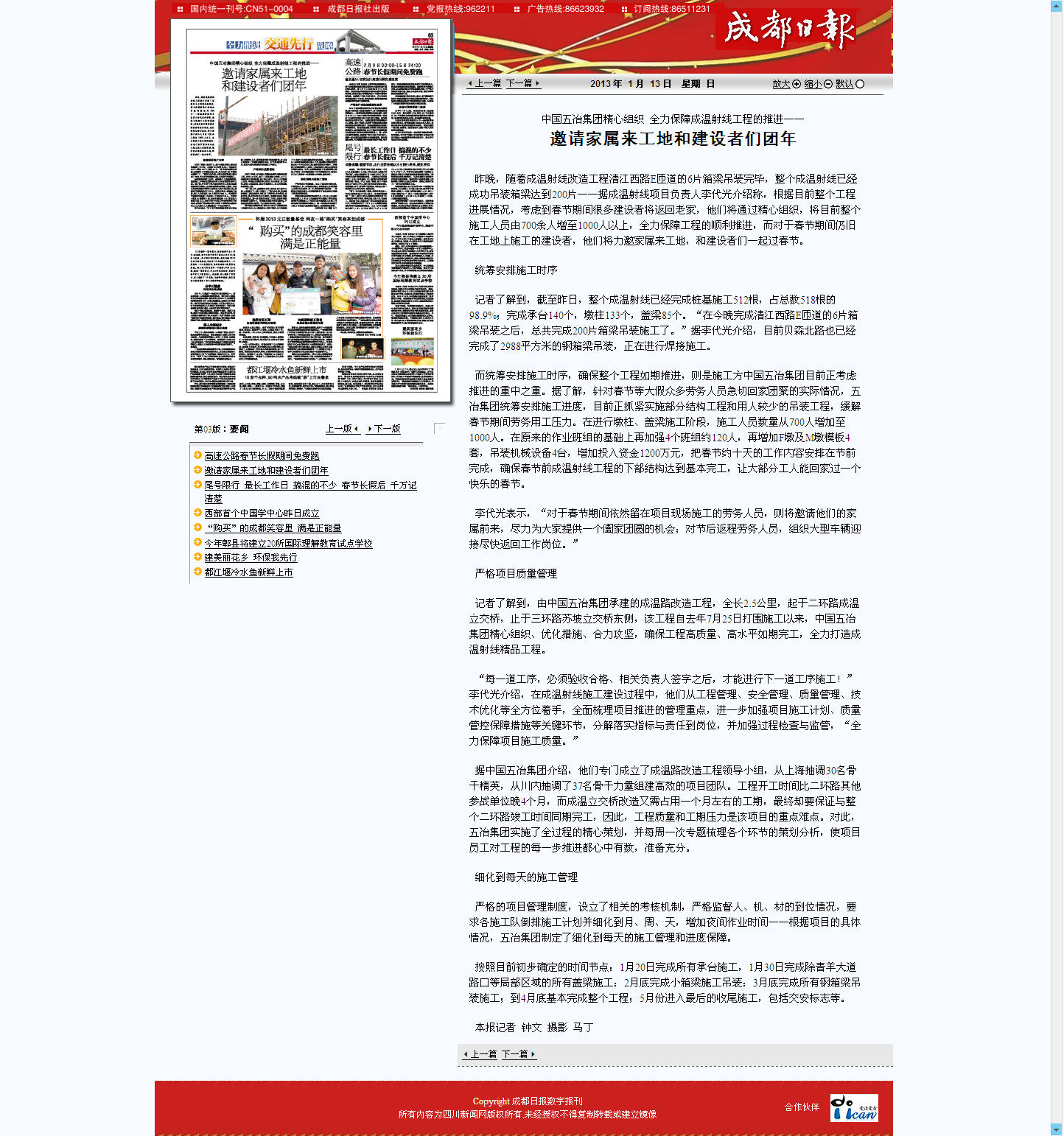 成都日報報道:中國五冶集團精心組織 全力保障成溫射線工程的推進——邀請家屬...