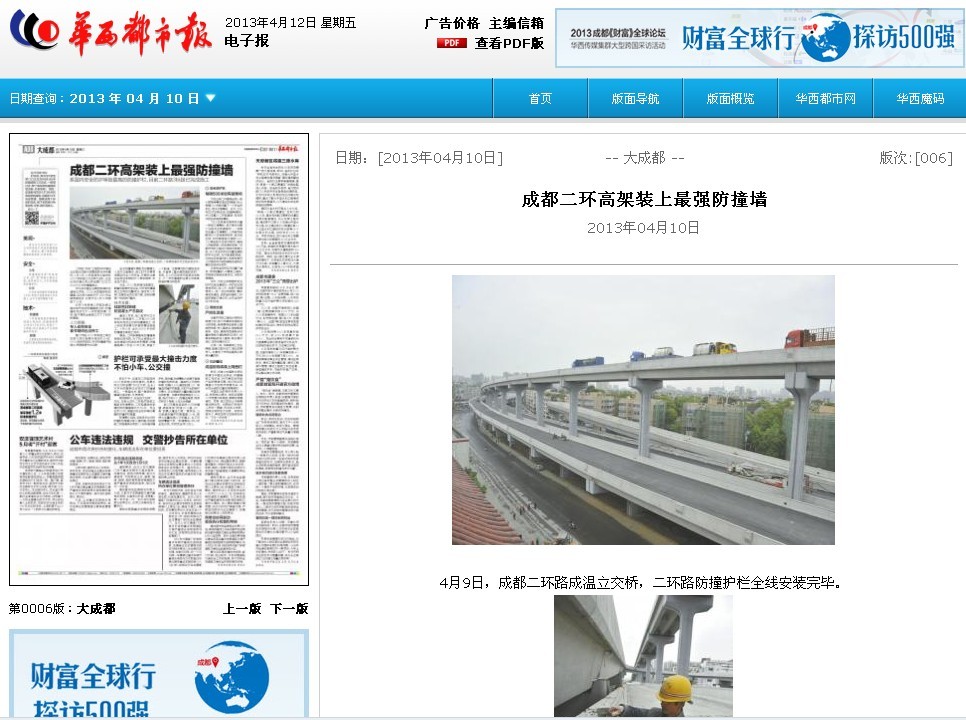 上一篇:天府早報報道:二環路首段高架防撞墻亮相