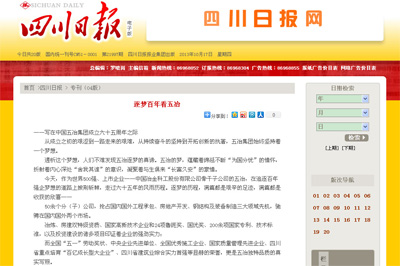 10月17日,四川日報以《逐夢百年看五冶》為題對中國五冶集團進行了整版重點報道,內文以“開啟夢想、跨越之夢、騰飛之夢”回顧了中國五冶集團六十五周年的發展歷程,并對建設百年五冶的偉大目標進行了展望。