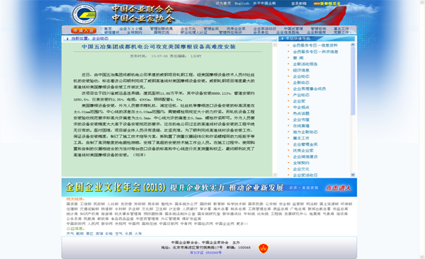中國企業聯合會報道:中國五冶集團成都機電公司攻克美國摩根設備高難度安裝