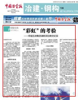 10月23日,《中國冶金報》在第5版頭條,以“彩虹的考驗”為題,對中國五冶集團迎擊彩虹臺風,積極投入人力物力確保湛鋼項目順利復產進行了紀實報道。