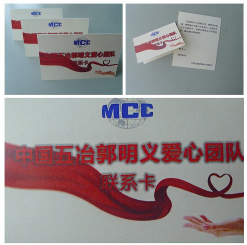 ????? 在全國廣泛深入持久地開展學雷鋒活動之際,公司團委不僅制定了志愿服務年度工作計劃,還號召公司青年向新時期雷鋒精神的傳承者郭明義同志學習,并組建了一支由百余名青年組成的“郭明義愛心團隊”,圍繞公司生產經營廣泛開展“崗位學雷鋒、爭做好員工”活動。為使活動落到實處,起到實效,公司團委設計制作了“中國五冶郭明義愛心團隊聯系卡”,做為愛心傳遞的有效載體發放到職工手中。