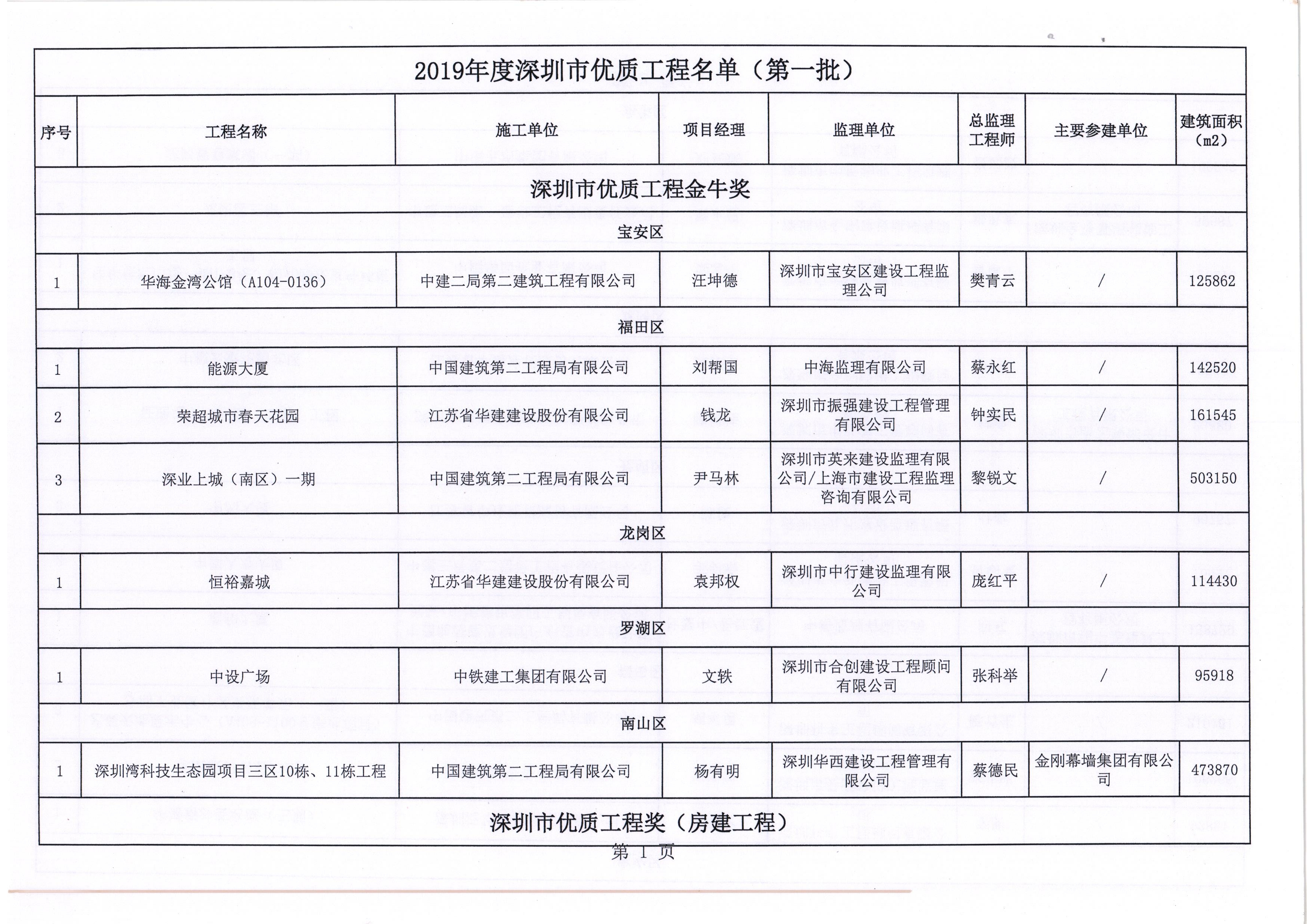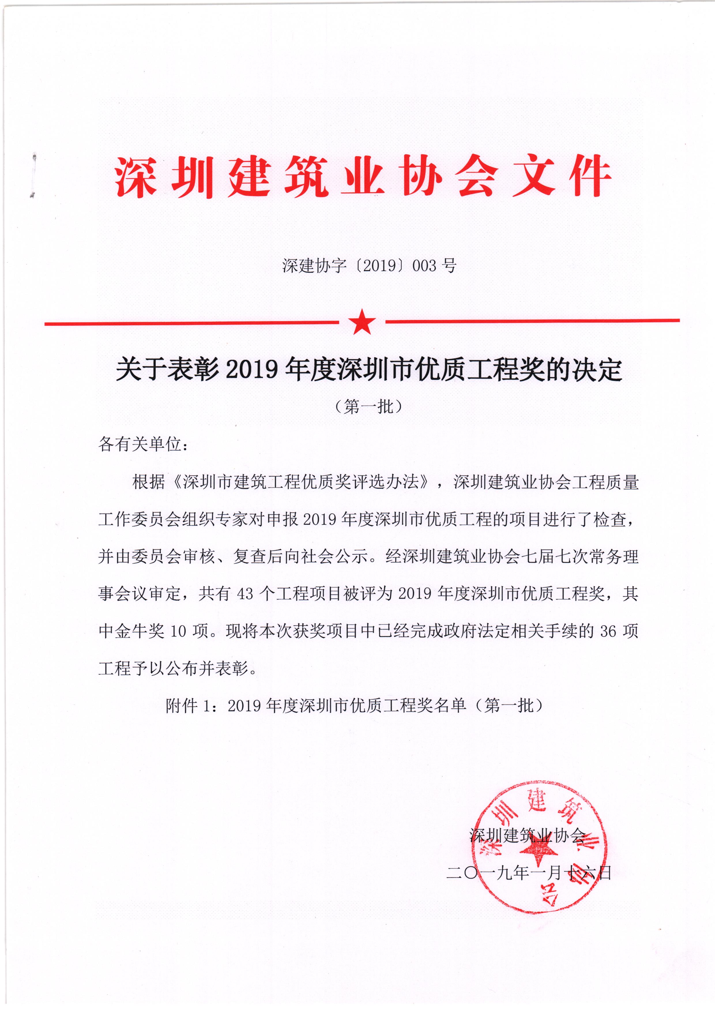 龍崗智慧家園(一期)榮獲2019年度第一批深圳市優質工程獎