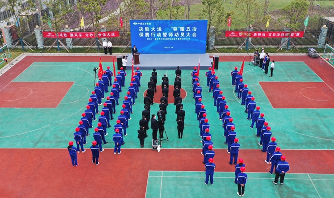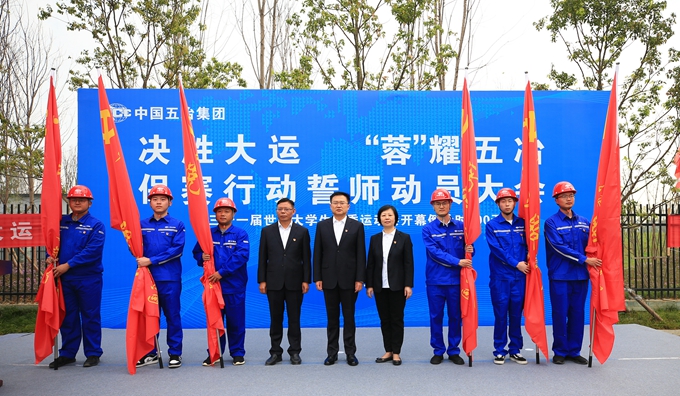 為做好大運(yùn)會各項(xiàng)保賽準(zhǔn)備工作,確保大運(yùn)會圓滿成功,3月18日,第31屆世界大學(xué)生夏季運(yùn)動會倒計(jì)時(shí)100天之際,中國五冶集團(tuán)在大運(yùn)會主會場東安湖公園召開“決勝大運(yùn)‘蓉’耀五冶”保賽行動誓師動員大會。集團(tuán)公司領(lǐng)導(dǎo)陳陽、周悅靜、譚興山,保賽領(lǐng)導(dǎo)小組成員,相關(guān)參建單位專職副書記、施工副總經(jīng)理,保賽黨員服務(wù)隊(duì)成員等參加活動。