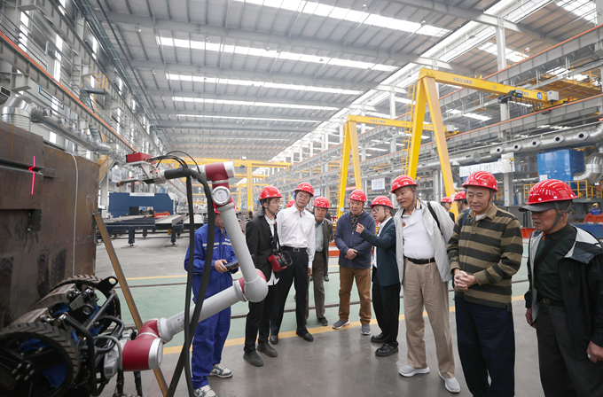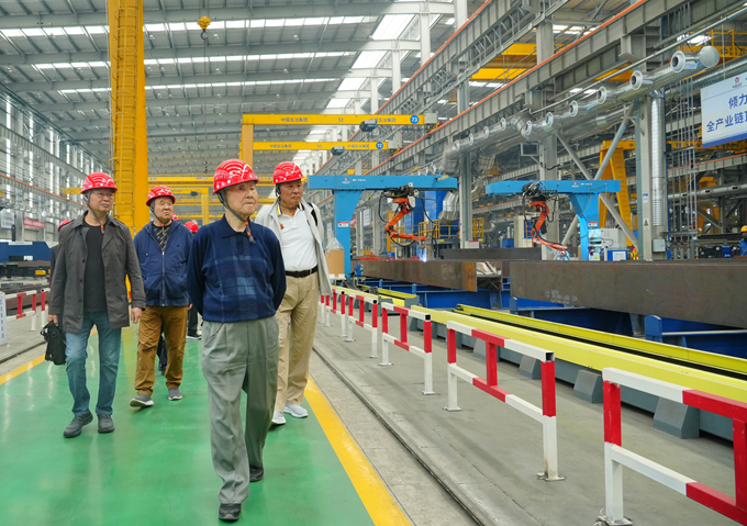 在中國五冶(成都)建筑科技產業園,退休領導們走進行業領先的裝配式混凝土和全自動無人化鋼結構智造基地,參觀了國內首條全智能鋼結構零部件生產線、業內最先進的鋼結構智能制造車間和焊接機器人工作站,以及工廠全生命周期智慧管控中心等設施,與現場人員就相關生產工藝、質量管理、市場推廣及工程應用情況進行了交流。在四川省唯一國家級認證零碳建筑——五冶科技中心大廈,大家觀看了公司自主研發的建筑智慧低碳運維系統及智能建筑機器人產品演示,并參觀院士專家工作室和建筑工業化與智能建造、城市更新、裝配式鋼結構建筑、智慧機電、公園城市、綠色與智慧巖土等工程技術研究中心,了解公司在創新平臺建設和新質生產力培育等方面的新舉措、新成效。在項目遠程指揮中心和集團展廳,大家細致了解了公司數字化企業大腦建設情況,以及打造全產業鏈頂級服務商取得的新業績、新成果。