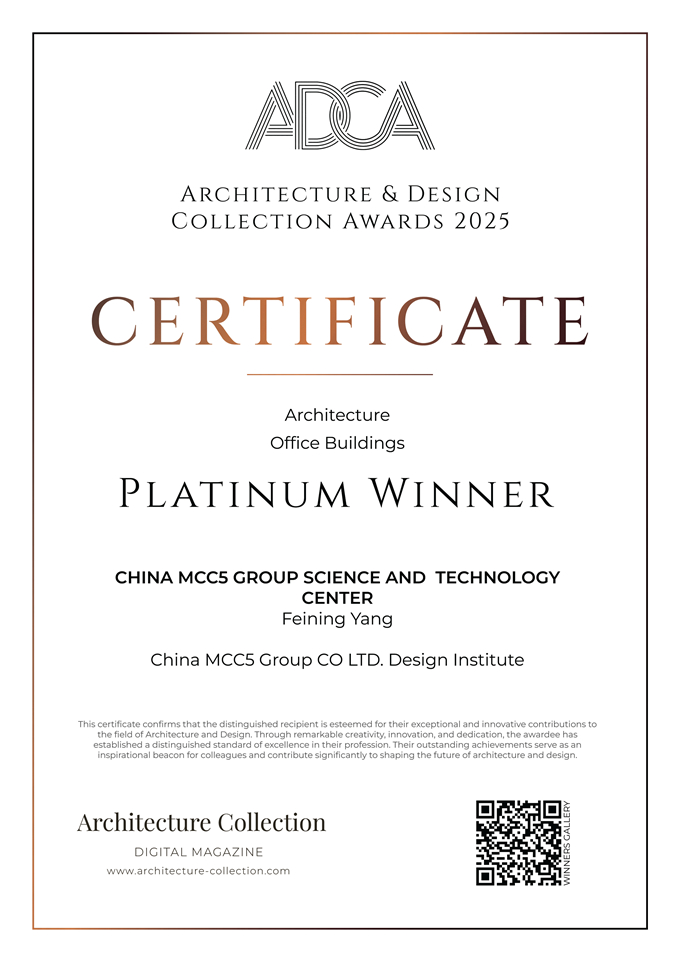 近日,《Architecture Collection》雜志2025建筑與設計收藏大獎Architecture & Design Collection Awards 2025(ADC Awards)揭曉獲獎名單,中國五冶集團科技中心摘得專業組辦公類最高榮譽鉑金獎,成為辦公類建成項目類別中唯一獲獎的國內項目。