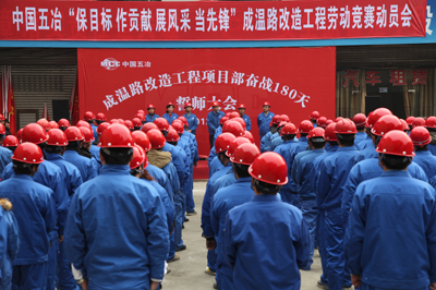 為積極響應成都市委、市政府“奮戰(zhàn)180天全面完成‘兩快兩射兩環(huán)’工程建設動員大會”的會議要求,12月6日,中國五冶集團成溫路改造工程大干180天勞動競賽動員大會在項目現(xiàn)場舉行。中國五冶集團副總經理田舜、工會、文化、安全、工程等部門負責人,參戰(zhàn)的路橋分公司、上海機械化分公司、鋼構分公司、四分公司相關領導,項目部全體員工以及項目4個工區(qū)管理人員代表共約100余人參加了動員會。