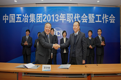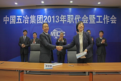 會(huì)議期間,集團(tuán)公司職工首席代表、工會(huì)主席周悅靜與集團(tuán)公司首席代表、董事、總經(jīng)理蒙昌嘉簽訂了《中國五冶集團(tuán)2013年度職工工資集體協(xié)議》,公司董事長、黨委書記程并強(qiáng)與公司董事、總經(jīng)理蒙昌嘉簽訂了《經(jīng)營承包責(zé)任書》,公司董事、總經(jīng)理蒙昌嘉與副總工程師唐世榮簽訂《新技術(shù)產(chǎn)品經(jīng)營管理責(zé)任書》、與四川地區(qū)各分子公司經(jīng)理簽訂了《經(jīng)營承包責(zé)任書》。