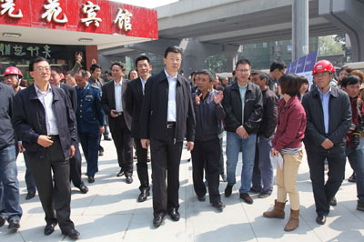 成都市人大常委會主任于偉一行詳細了解了成溫路改造工程的進展情況,對中國五冶集團在晚開工四個月的情況下能克服困難,迎頭趕上,予以肯定。他說:“兩快兩射”工程是市委實施“交通先行”戰略的標志性工程,更是方便廣大市民出行的民心工程、民生工程。工程建設時間緊,施工工藝復雜,中國五冶集團作為具有相當實力的大型央企,一定能確保項目按時優質圓滿完成。