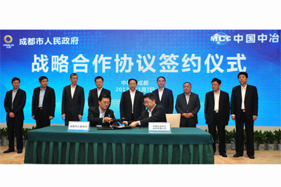 在全體與會人的見證下,中國中冶副總裁王秀峰代表中國中冶與成都市政府簽署了戰略合作框架協議。根據協議,雙方將在建設中冶西部區域中心、中冶天府新區創新科研基地、實施舊城改造、參與城市基礎設施項目等領域開展合作。