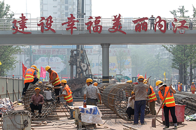 內(nèi)江邱家嘴立交橋項(xiàng)目的同事們正奮戰(zhàn)在一線
