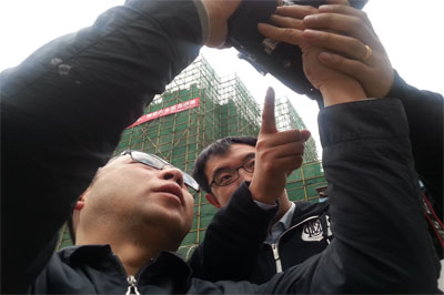 在項目現場實戰拍攝中,集團攝影師鄧超針對項目特點及各節點情況的分析,帶領大家就拍攝工程項目各大場面如何選位置及選時間,項目各重大節點期間如何找主題、尋主體、挑角度、等時機等逐一進行了實地踩點試拍,針對現場畫面的合理布局及構圖、利用適合的光線、施工人員的情態動作捕捉這三大要素結合自己的經驗耐心分析和交流,在帶領大家進行的工地攝影創作中,大到攝影意識,小到握機方式都一一進行了講解。