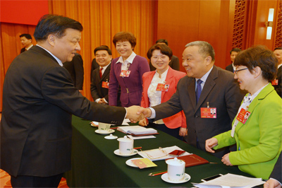 劉云山與全國(guó)人大代表程并強(qiáng)親切握手