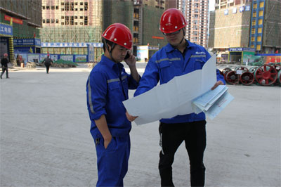 蚌埠槐花園項目現場工作人員正在部署施工方案