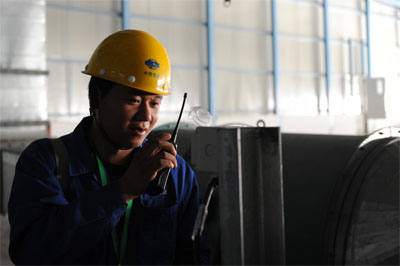 上海寶之云項目現場工施工工人正在對電氣設備檢修調試進行操作指揮