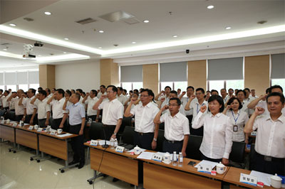 活動(dòng)現(xiàn)場(chǎng),集團(tuán)公司黨委書記、董事長(zhǎng)程并強(qiáng)帶領(lǐng)會(huì)場(chǎng)全體黨員面向黨旗莊嚴(yán)宣誓。按照集團(tuán)公司黨委的安排部署,此次主題活動(dòng)將進(jìn)一步把“兩學(xué)一做”推向高潮。(曾堯/文 鄧超 費(fèi)虎/圖)