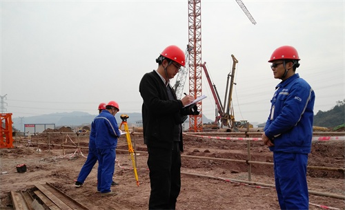 在陽(yáng)光下,四川理工白酒學(xué)院(二期)工程的工地上已是人頭攢動(dòng)的情景。從大年初三開(kāi)始,工地就開(kāi)始復(fù)工,幾十名五冶員工分頭行動(dòng),投入到地勘、樁基、土建、土方等標(biāo)段的施工中。