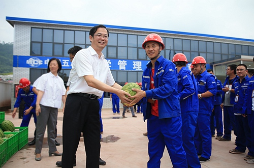 同時,集團公司領導一行對公司宜賓片區(qū)在建項目員工致以親切慰問,為大家送上了西瓜、飲料、藿香正氣水等防暑用品,并叮囑大家在高溫施工期間,要保重身體、確保安全,讓公司放心,讓家人放心。(鄧超)