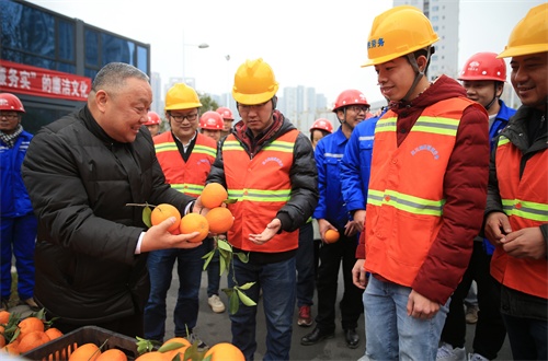 新年伊始,萬象更新。2019年元旦到來之際,公司廣大建設者們依然堅守在項目一線,為保履約、促發展不懈努力。1月1日,中國五冶集團黨委書記、董事長程并強一行前往沙北五、沙北六項目,錦江人才公寓項目現場,看望慰問奮戰在一線的項目職工,為大家送來豬肉、水果、面包、方便面、礦泉水等慰問品,并與一線員工親切交流,向他們致以新年問候。集團公司副總經理譚興山,董事會秘書趙云,黨群部、工程部負責人,成勘公司、一公司負責人等參加慰問。