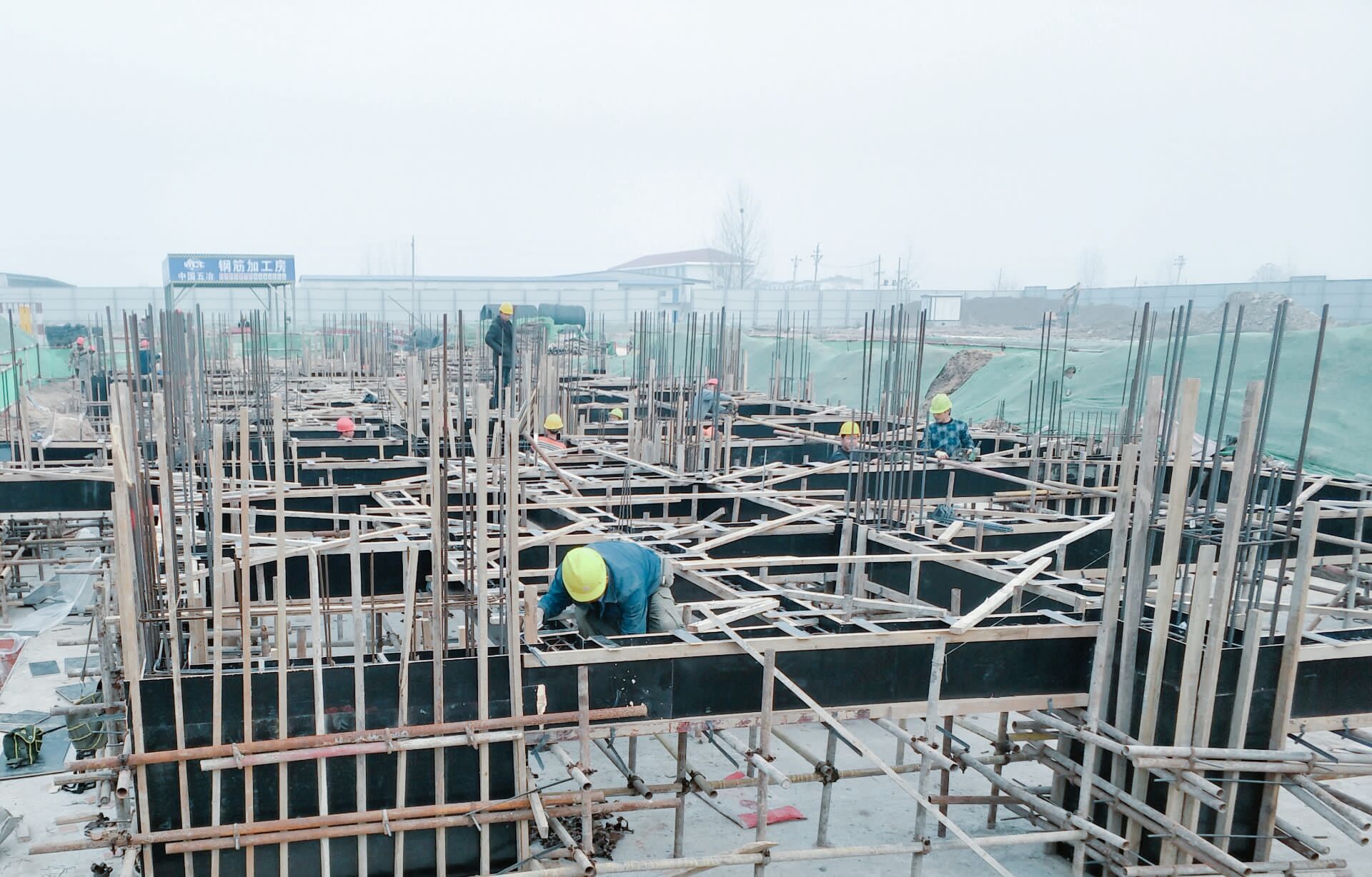 在河南商丘市響河新城項目,室外溫度只有3度,凜冽的寒風中,項目團隊依然奮戰在項目現場。為了實現項目重要節點,他們放棄了回家與家人團聚的機會,選擇了工作在項目一線。現場工人們在工長的帶領下,頂著刺骨的寒風,綁扎著冰冷的鋼筋,即便雙手略微顫抖,但臉上露出的卻是大大的笑容。