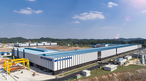 在基地中,坐落著我國西南地區最大的鋼結構預生產線,最大生產效率可以達到30秒每米。這意味著在30秒的時間內,上料、清理、除塵、噴漆、加熱、烘干、下料等近10項鋼板預處理工序都將被完成,堪比上百名熟練工人協作才能達到的效果。